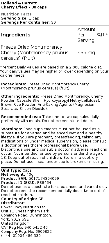 Holland & Barrett – Cherry Effect – 30 Capsules