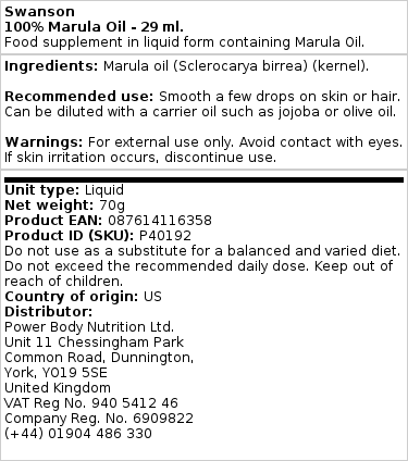 Swanson – 100% Marula Oil – 29 ml