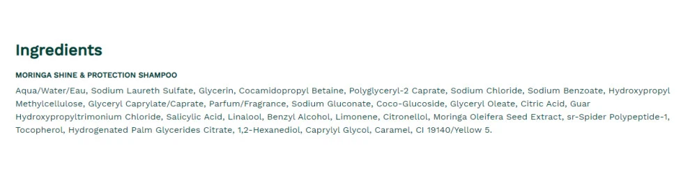 Crafted with the essence of moringa extract,this shampoo offers a refreshing experience. Its formula is enriched with various natural components that are selected for their quality and origin.